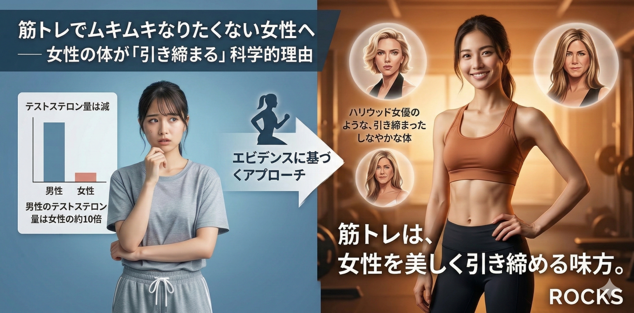 彼女たちはムキムキですか? 違います。引き締まった、しなやかな体です。あのスタイルは、有酸素運動だけでは作れません。筋トレで筋肉をつけ、食事管理で脂肪を落とした結果です。