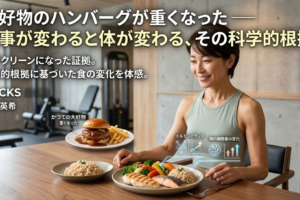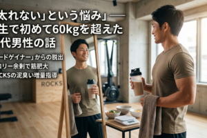 初期に感じる「太くなった感覚」の正体は、筋肉の上に脂肪がまだ残っている状態でわずかに筋肉が張ること。トレーニングと食事管理を継続して脂肪が落ちてくると、その下にある引き締まった筋肉のラインが現れます。