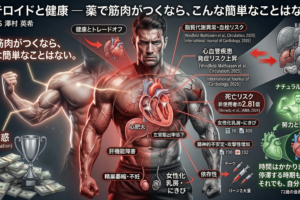 筋肉を大きくする最大の要因はテストステロン(男性ホルモン)です。2010年にSports Medicine誌に掲載されたレビュー(Vingren et al.)では、思春期以降の男性のテストステロン濃度は女性の約10倍であることが報告されています。