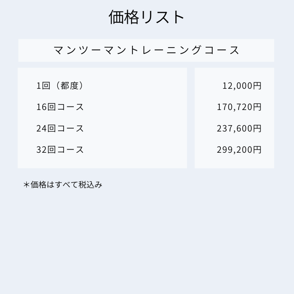 - トレーニングメニューは会員様の目的に合わせて個別にオーダーメイドします。